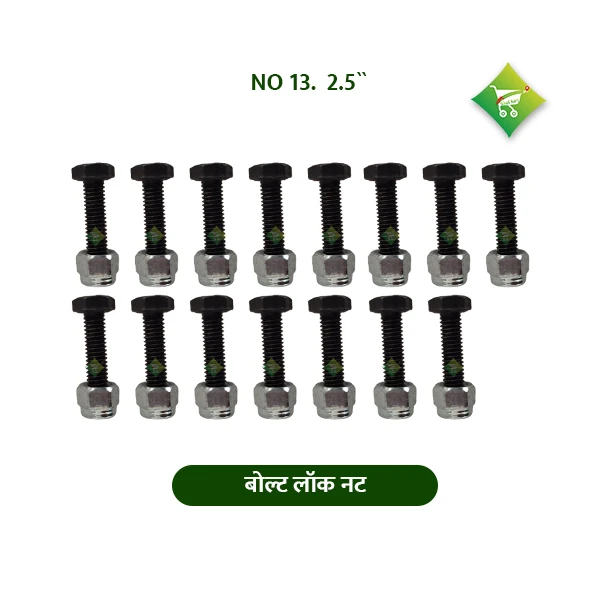 A Bolt Lock Nut 13 No. 2.5" is a fastener designed to secure bolts and prevent them from loosening due to vibration or movement. It has a thread size of 13 No. and is suitable for use with 2.5-inch bolts. These lock nuts are commonly used in heavy machinery, agricultural equipment, vehicles, and construction work. They often feature a nylon insert (nyloc) or a deformed thread pattern that adds friction, ensuring a strong and stable connection.