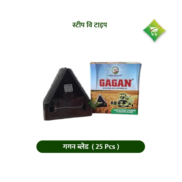 The Blade Basket Gagan V Type 3 MM (18 Pcs.) is a vital part of a straw reaper machine. These V-type blades are designed for efficient cutting and reaping of straw or harvested crop residues. The V-shape of the blades ensures better contact with the straw, leading to cleaner cutting and faster processing. With a thickness of 3mm, the blades are strong, durable, and capable of handling tough conditions while maintaining performance. The pack consists of 18 pieces, making it suitable for replacing or repairing the blades on a straw reaper. These blades are known for their precision and long-lasting performance, ensuring smooth operation of the straw reaper in agricultural tasks.