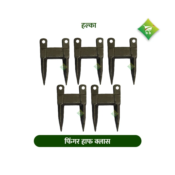 The Finger Half Class (Gagan) refers to the finger-like projections attached to the cutting platform. These projections help guide and pull the crop toward the cutter bar, ensuring smoother and more effective harvesting. The term "Gagan" is likely the brand name or specific model name for this type of finger used in harvesters.