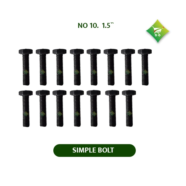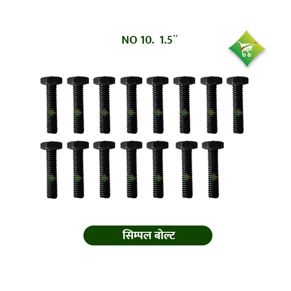 A Simple Bolt 10 No. 1.5" is a standard fastener used to join two or more components securely. It has a thread size of 10 No. and a length of 1.5 inches. These bolts are commonly used in light machinery, furniture, vehicles, and agricultural tools. They are often paired with nuts and washers to ensure a firm and stable connection, preventing loosening due to vibration or load.