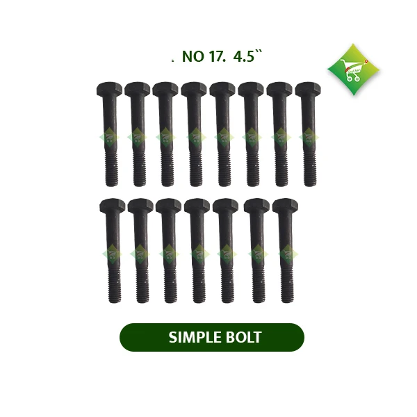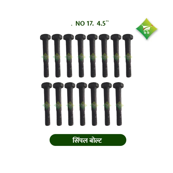 A Simple Bolt 17 No. 4.5" is a standard fastener designed to securely join two or more components. It has a thread size of 17 No. and a length of 4.5 inches. These bolts are widely used in heavy machinery, agricultural equipment, vehicles, and construction projects. Constructed from strong materials like stainless steel or carbon steel, they offer firm and reliable connections. For added stability, they are often paired with matching nuts and washers to prevent loosening due to vibration or load.