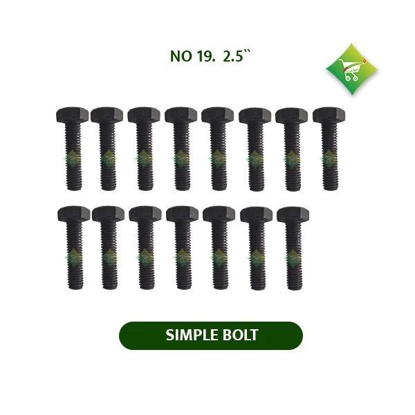 A Simple Bolt 19 No. 2.5" is a standard fastener used to securely join two or more components. It has a thread size of 19 No. and a length of 2.5 inches. These bolts are commonly used in heavy machinery, agricultural equipment, vehicles, and construction projects. Made from strong materials like stainless steel or carbon steel, they provide firm and reliable connections. Typically, they are used with matching nuts and washers to prevent loosening due to vibration or load.